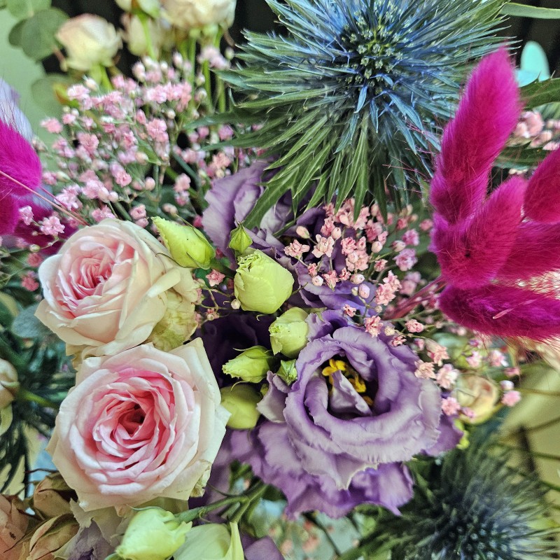 Da wir jeden Blumengruss individuell für Sie anfertigen, kann es zu natürlichen Farbspielen und Abweichungen der Blumenauswahl kommen.Selbstverständlich bemühen wir uns Ihre Bestellung so genau wie möglich auszuführen.